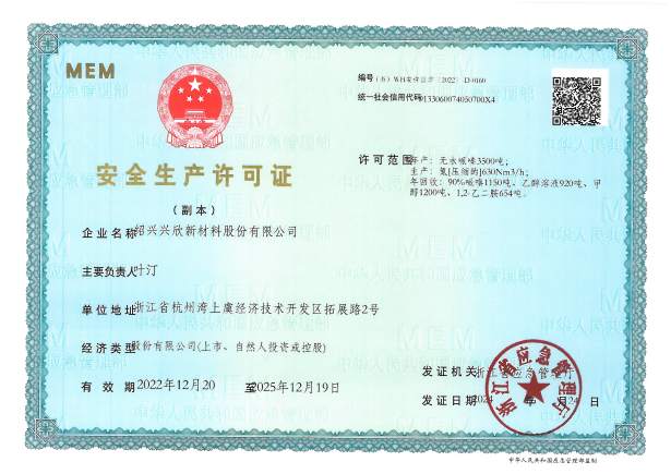 紹興興欣新材料股份有限公司成立于2002年06月27日,占地面積122畝,位于杭州灣上虞經(jīng)濟(jì)技術(shù)開(kāi)發(fā)區(qū)拓展路2號(hào),現(xiàn)有職工200余人,專(zhuān)業(yè)技術(shù)人員50余人;博士、碩士研究生30余人組成的一支知識(shí)型、專(zhuān)業(yè)化的技術(shù)科研團(tuán)隊(duì)。公司面向全球市場(chǎng),專(zhuān)業(yè)開(kāi)發(fā)電子化學(xué)品、環(huán)保化學(xué)品、醫(yī)藥中間體、高分子材料等先進(jìn)新材料重點(diǎn)領(lǐng)域的省級(jí)科技型企業(yè);建有浙江上虞、安徽東至兩個(gè)生產(chǎn)基地。目前為“國(guó)家高新技術(shù)企業(yè)”、浙江省“隱形冠軍”企業(yè)、浙江省專(zhuān)精特新中小企業(yè);建有“省級(jí)”研究開(kāi)發(fā)中心,共建天津大學(xué)浙江紹興研究院電子化學(xué)品研發(fā)中心。